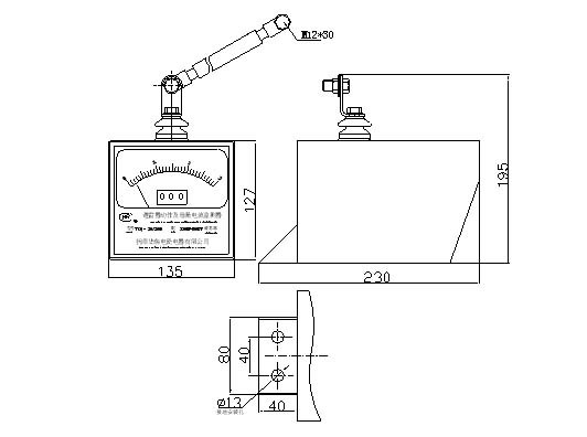 2、監(jiān)測器的安裝高度位置應(yīng)便于觀看,安裝時用軟電纜將監(jiān)測器的高壓端子與避雷器的接地端子相連,接地線應(yīng)接在監(jiān)測器的2-ф13安裝孔處。